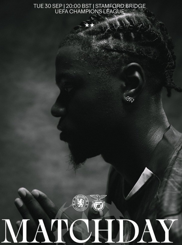 道正网 切尔西官方晒海报预热欧冠对本菲卡,伤愈复出的拉维亚出镜